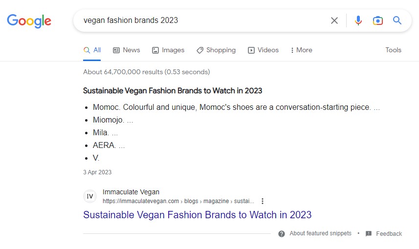 The highest search visibility of all vegan fashion retailers. Monthly SEO visits from 0 to tens of thousands in less than 2 years.